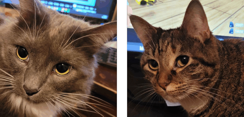 Adrien likes to joke that their hobby is collecting hobbies, but reading, writing, gaming, and bookbinding are some of their most enduring interests. They have a degree in English with a minor in Creative Writing, and while their physical location and form is unimportant, these photos of their cats Spencer and Bug are.